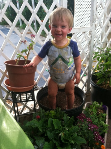 Eli is almost 1 1/2. How crazy is that? He has such a cute, loving personality. I just kiss his sweet little cheeks all the time. As if you can't tell from the pictures, this kid loves to eat! He is 24lbs; Kyle weighed that at 2 year old. LOL Him and Kyle share most clothes, it's funny. He is saying more words too. His new one is "ack" which I think means "out", but Kyle says he is saying "truck". It's funny when Kyle tries to interpret what he's saying and repeats his jabbering. Eli loves to go in Kyle's room and wake him up and give him kisses. It's adorable.